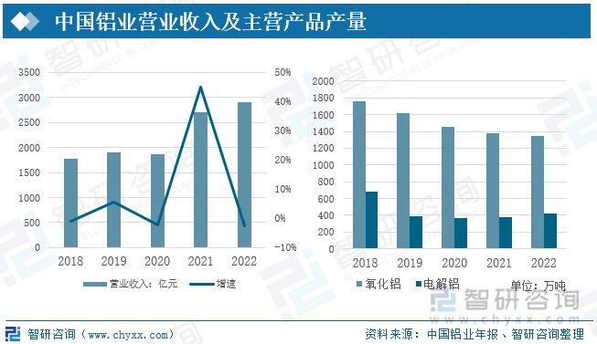 中國(guó)鋁業(yè)集團(tuán)有限公司是中國(guó)鋁行業(yè)中唯一集鋁土礦勘探、開(kāi)采,氧化鋁、原鋁和鋁加工生產(chǎn)、銷(xiāo)售,技術(shù)研發(fā)為一體的大型鋁生產(chǎn)經(jīng)營(yíng)企業(yè),是中國(guó)最大的氧化鋁、原鋁和鋁加工材生產(chǎn)商,是全球第二大氧化鋁生產(chǎn)商、第三大原鋁生產(chǎn)商。2021年,受鋁價(jià)格上升的影響,中國(guó)鋁業(yè)營(yíng)業(yè)收入實(shí)現(xiàn)大幅增長(zhǎng),2021年?duì)I業(yè)收入為2988億元,較上年同期同比增加60.65%,2022年中國(guó)鋁業(yè)營(yíng)業(yè)收入為2909億元,較上年減少80億元,同比減少2.64%。受鋁價(jià)格上升的影響,近年來(lái)中國(guó)鋁業(yè)主營(yíng)產(chǎn)品氧化鋁與電解鋁的產(chǎn)量都呈現(xiàn)出下降的趨勢(shì),2022年氧化鋁的生產(chǎn)產(chǎn)量為1351萬(wàn)噸,較上年減少30萬(wàn)噸,電解鋁產(chǎn)量略有增加電解鋁產(chǎn)量為417萬(wàn)噸,較上年同期同比增加10.03%。