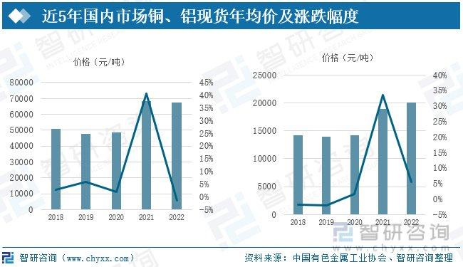 我國(guó)煉銅行業(yè)集中度較高,龍頭企業(yè)之間差距較小;我國(guó)電解鋁行業(yè)集中度低,行業(yè)較為分散,主要是在我國(guó)有色金屬發(fā)展的初期階段,電解鋁產(chǎn)能擴(kuò)張嚴(yán)重,行業(yè)技術(shù)壁壘偏低,行業(yè)中小企業(yè)參與者眾多,從而導(dǎo)致行業(yè)市場(chǎng)集中度分散。2022年,全球有色金屬價(jià)格大浮波動(dòng),上半年,受俄烏沖突、能源危機(jī)、南美供應(yīng)擾動(dòng)等因素的影響,銅價(jià)不斷走高,2022年一季度銅價(jià)創(chuàng)歷史新高,二季度在美聯(lián)儲(chǔ)加息的影響下價(jià)格回調(diào),2022年,我國(guó)銅現(xiàn)貨年均價(jià)為67470元/噸,較上年同比減少1.5%。鋁行業(yè)是國(guó)家重要的基礎(chǔ)產(chǎn)業(yè),氧化鋁和原鋁作為重要的基礎(chǔ)原材料,與機(jī)電、電力、航空航天、造船等行業(yè)密切相關(guān),其產(chǎn)品價(jià)格隨國(guó)內(nèi)外宏觀(guān)經(jīng)濟(jì)波動(dòng)呈周期性波動(dòng)。2022年我國(guó)鋁現(xiàn)貨年均價(jià)為20006元/噸,較上年增加5.6%。