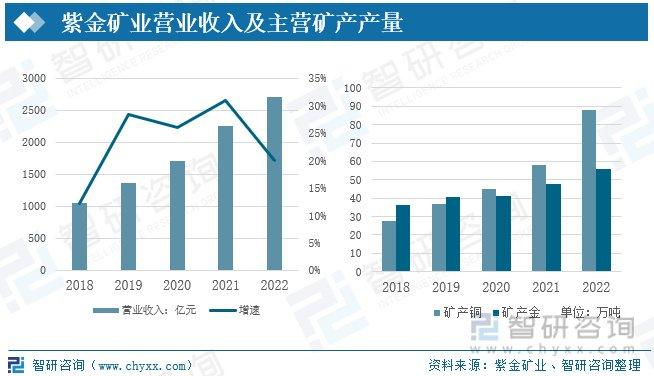 紫金礦業(yè)是一家在全球范圍內(nèi)從事銅、金、鋅、鋰等金屬礦產(chǎn)資源勘查、開(kāi)發(fā)及工程設(shè)計(jì)、技術(shù)應(yīng)用研究的大型跨國(guó)礦業(yè)集團(tuán),是中國(guó)控制金屬礦產(chǎn)資源最多的企業(yè)之一。紫金礦業(yè)營(yíng)業(yè)收入近年來(lái)保持高速增長(zhǎng)的趨勢(shì),2022年紫金礦業(yè)營(yíng)業(yè)收入為2703億元,較2021年增加20%。2019年之前,紫金礦業(yè)礦產(chǎn)金的產(chǎn)量大于礦產(chǎn)銅的產(chǎn)量,2020年開(kāi)始,紫金礦業(yè)開(kāi)始大力發(fā)展礦產(chǎn)銅,礦產(chǎn)銅的產(chǎn)量實(shí)現(xiàn)高速增長(zhǎng),2022年,礦產(chǎn)銅的產(chǎn)量為88萬(wàn)噸,較2021年增加30萬(wàn)噸,同比增加51.72%。