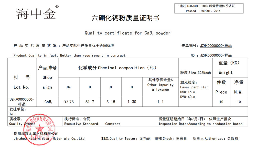 產(chǎn)品名稱:六硼化鈣(CaB6)