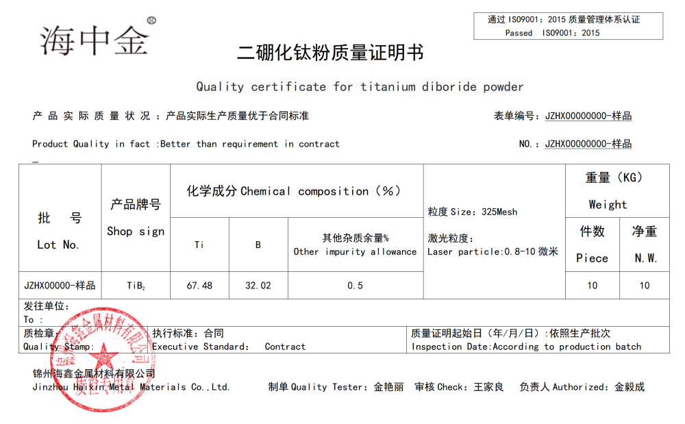 產(chǎn)品名稱:二硼化鈦(TiB2)