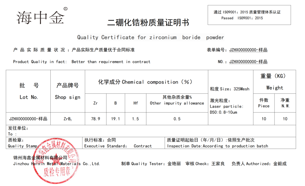 產(chǎn)品名稱(chēng):二硼化鋯(ZrB2)