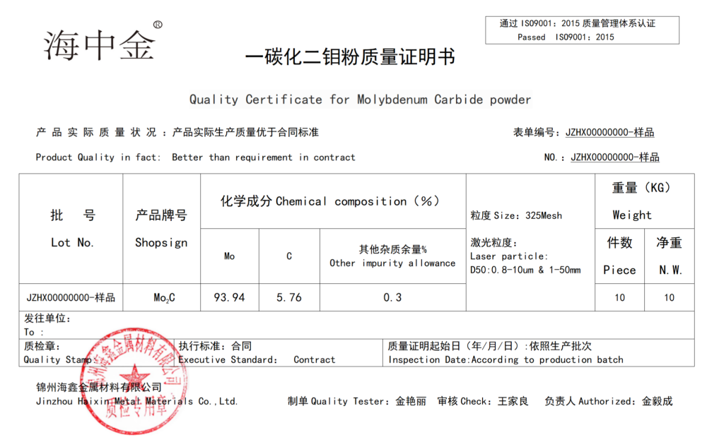 產(chǎn)品名稱:碳化鉬(Mo2C)