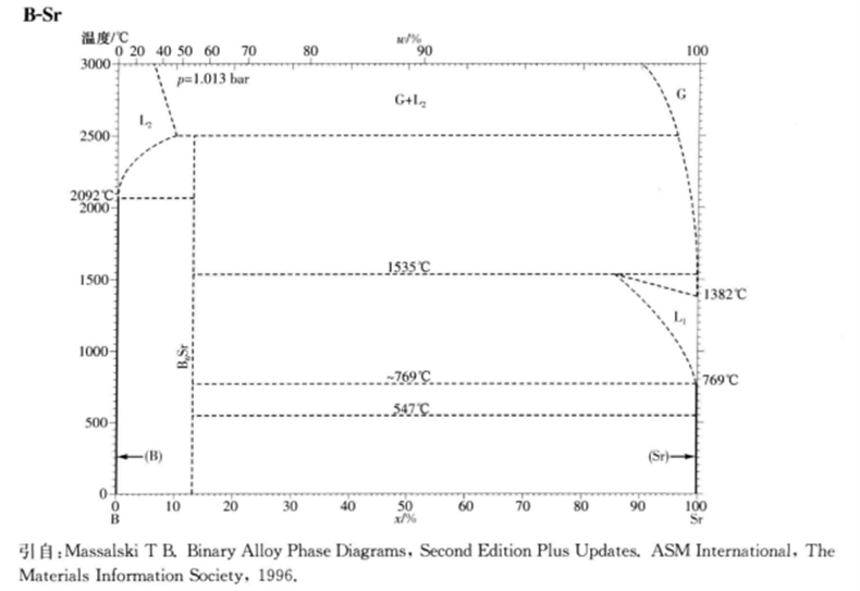 1)將金屬Sr和計(jì)算量的無(wú)定形B混勻加熱至紅熱,兩單質(zhì)相化合即得。