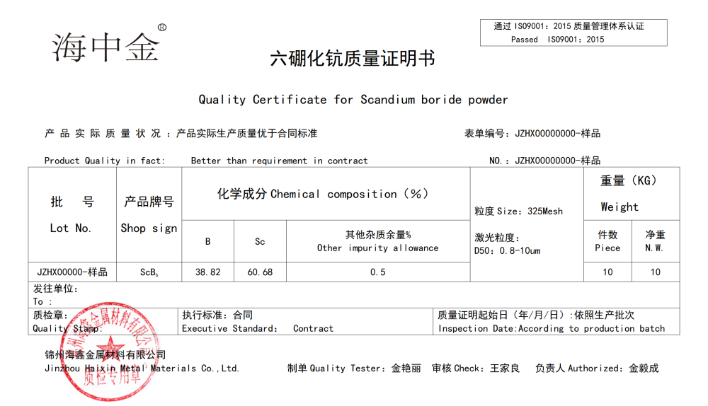 產(chǎn)品名稱:六硼化鈧(ScB6)