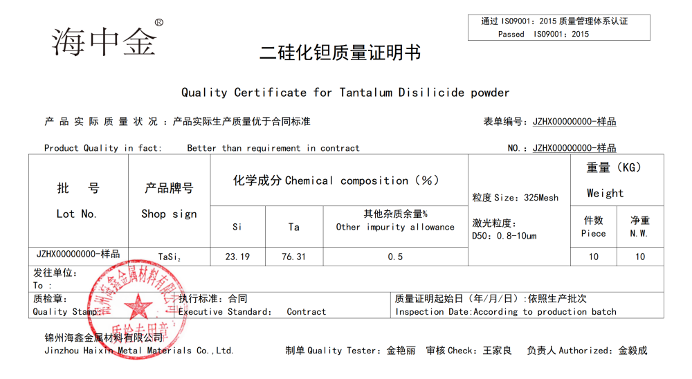 產(chǎn)品名稱:二硅化鉭(TaSi2)