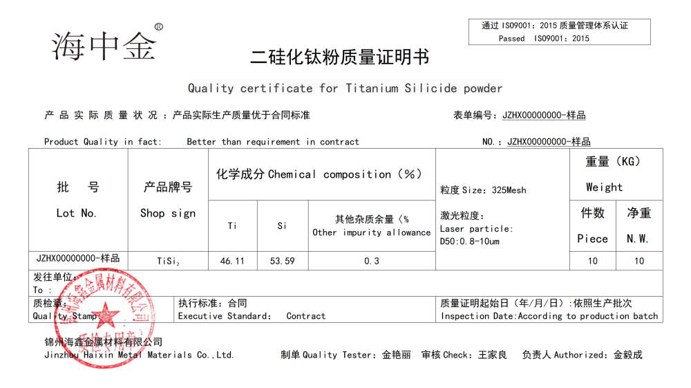 產(chǎn)品名稱:二硅化鈦(TiSi2)