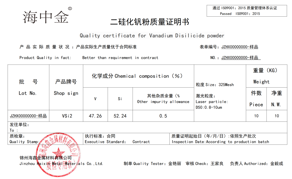 產(chǎn)品名稱:二硅化釩(VSi2)