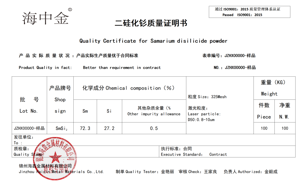 產(chǎn)品名稱:二硅化釤(SmSi2)
